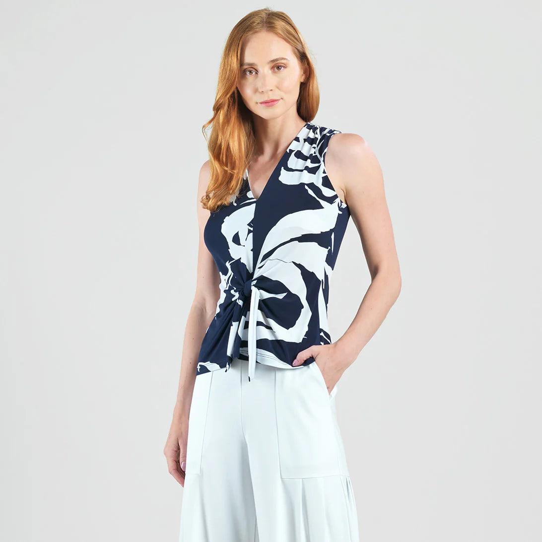 T49P29 NAVY/WHITE ABSTACT PRINT TOP.