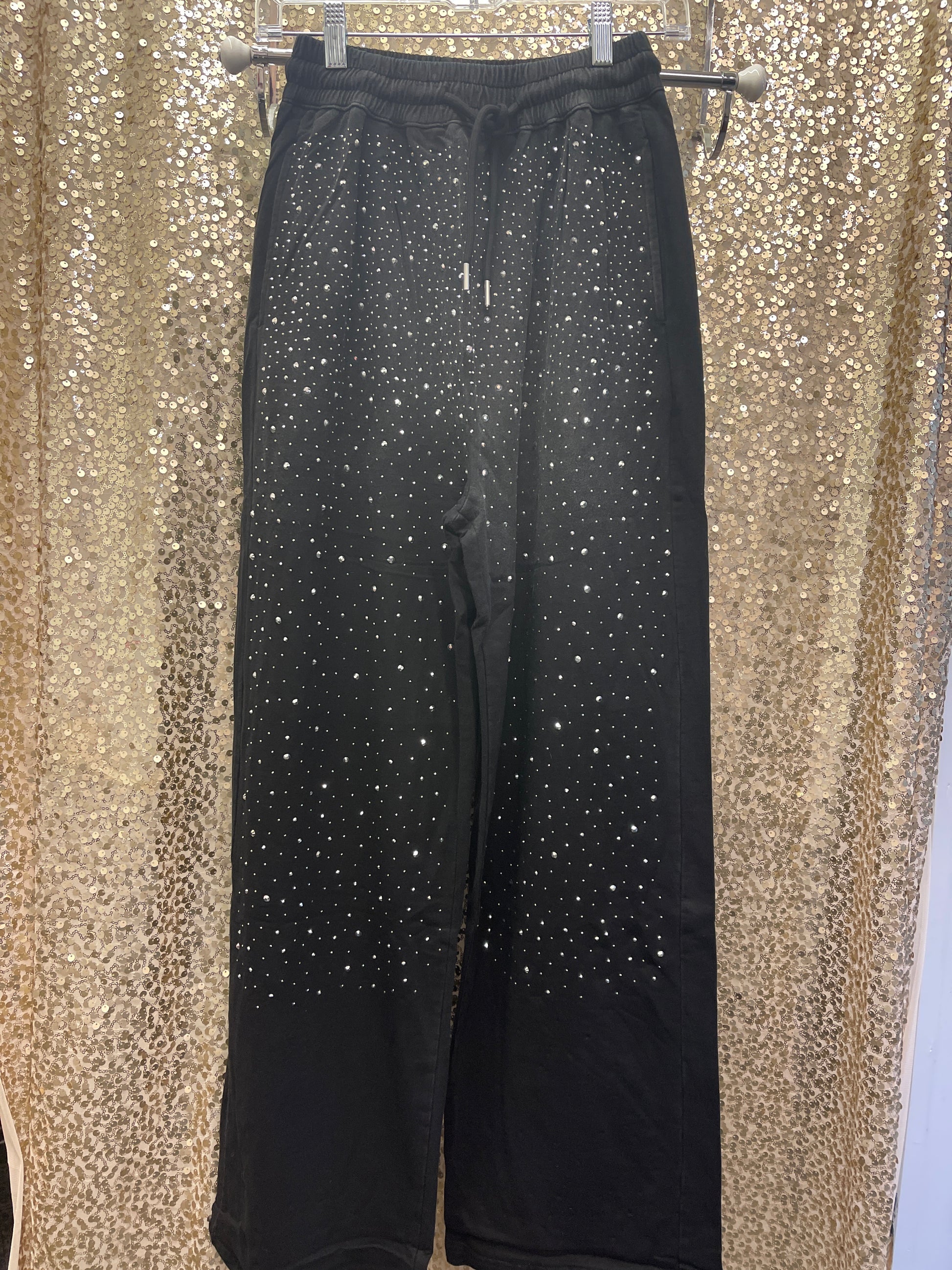 D&D BLK PANT ELASTIC WAIST W/TIE RHINESTONE FRONT