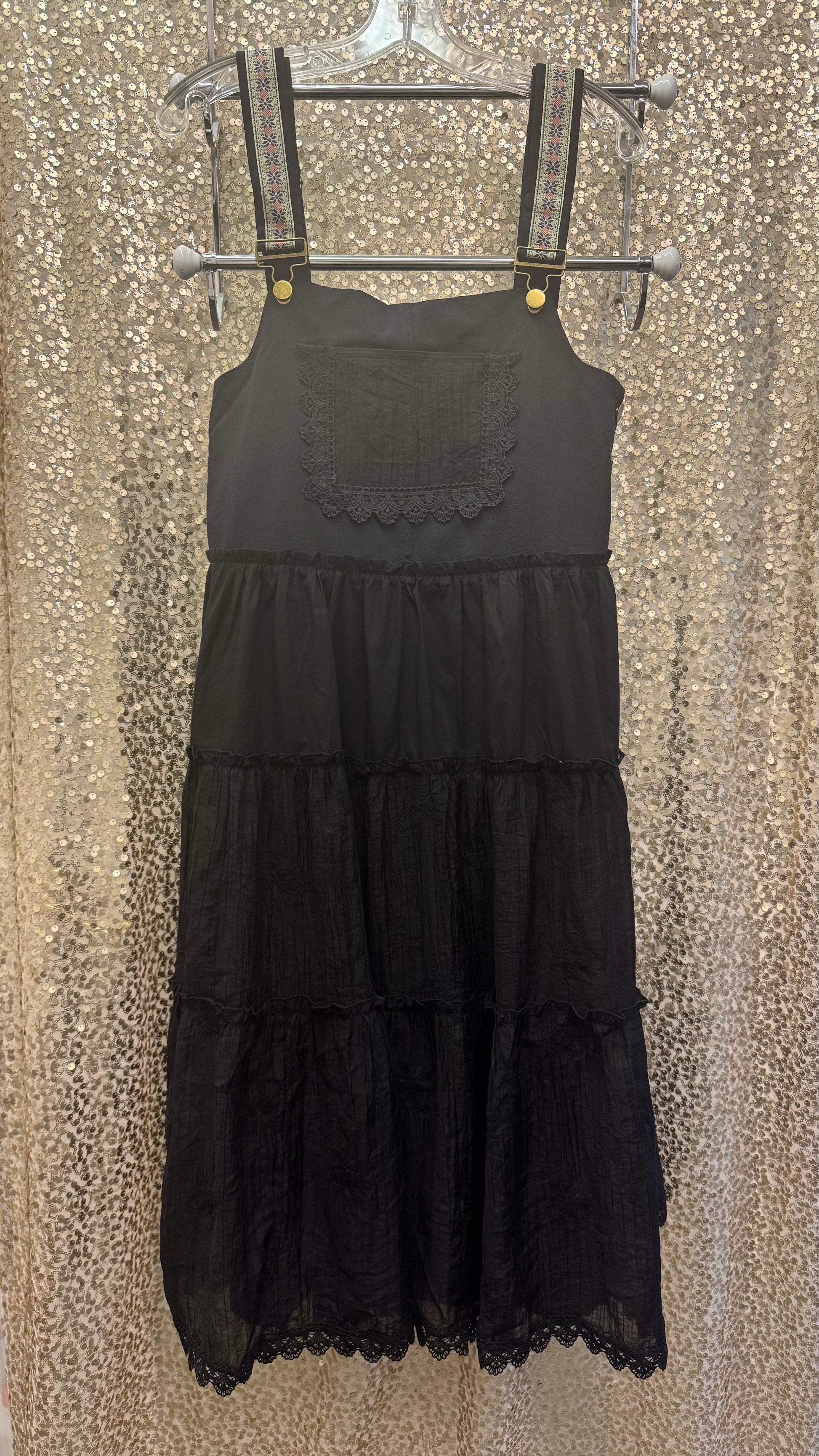 DD LACE-TRIMMED POCKET OVERALL DRESS