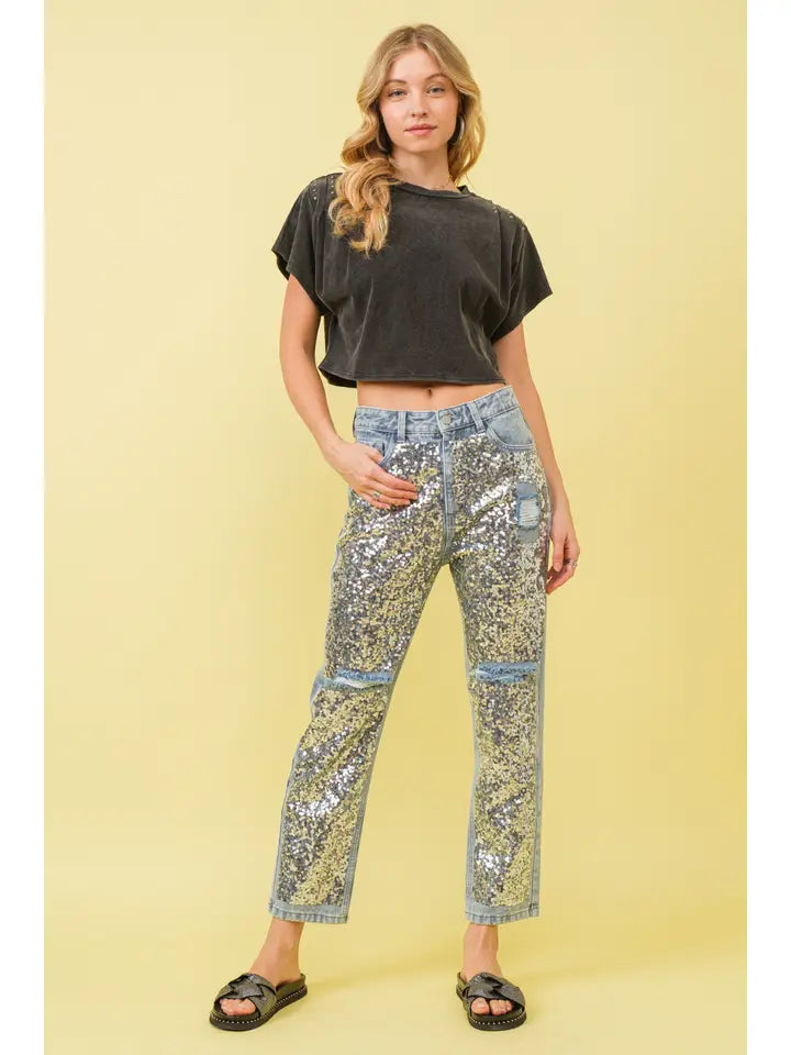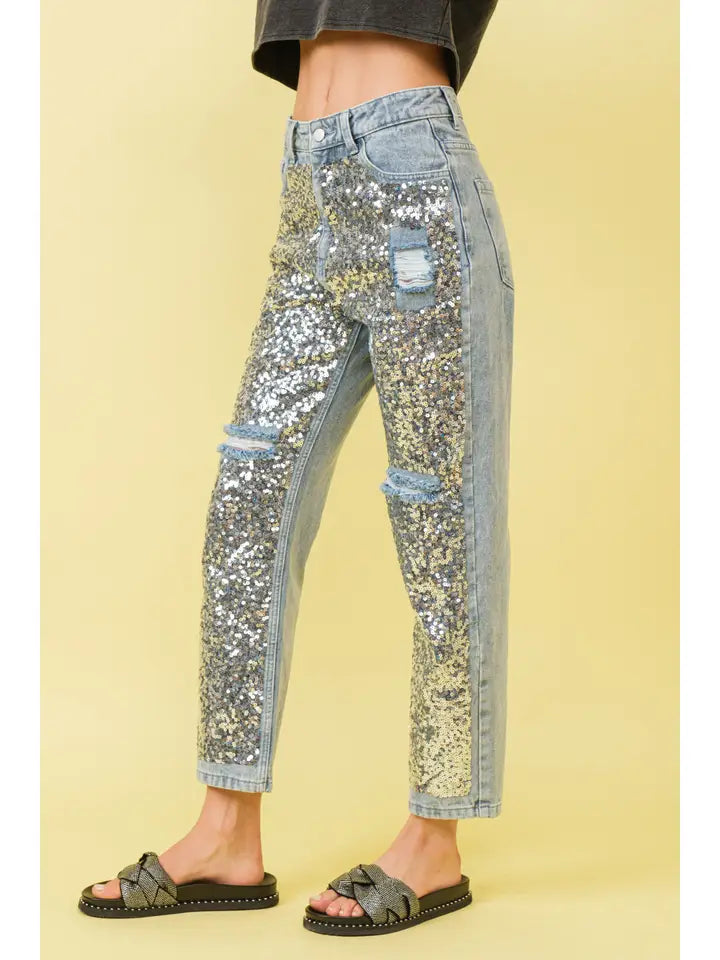DD SEQUIN FRONT DENIM JEAN