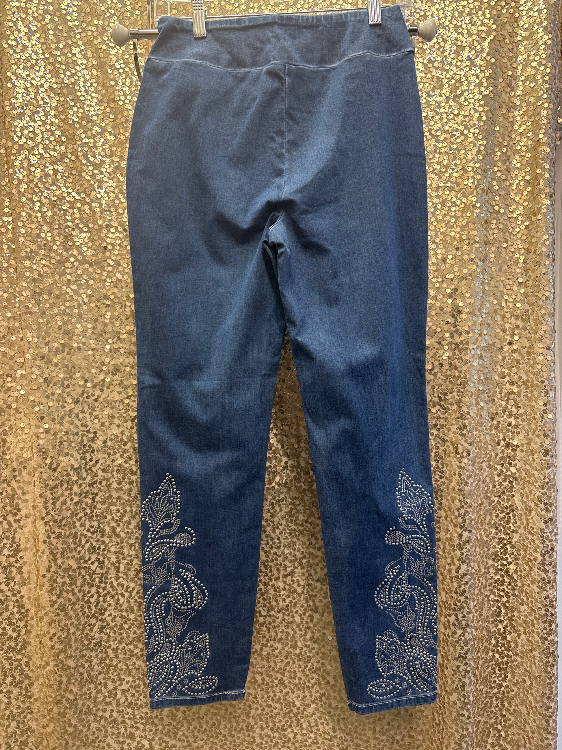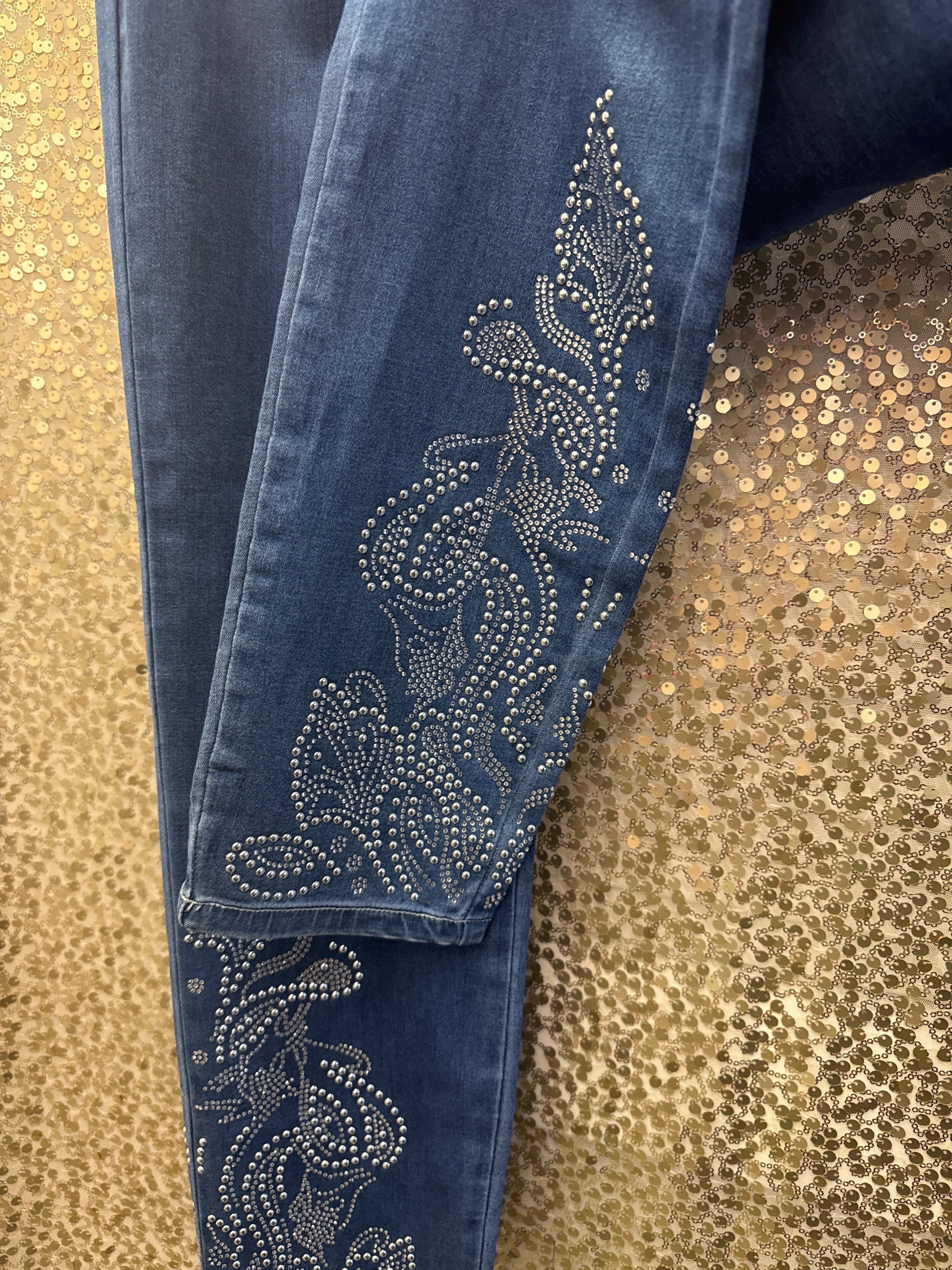 ETHYL PULLON ANKLE LENGTH DENIM WITH RHINESTONE PATTERN