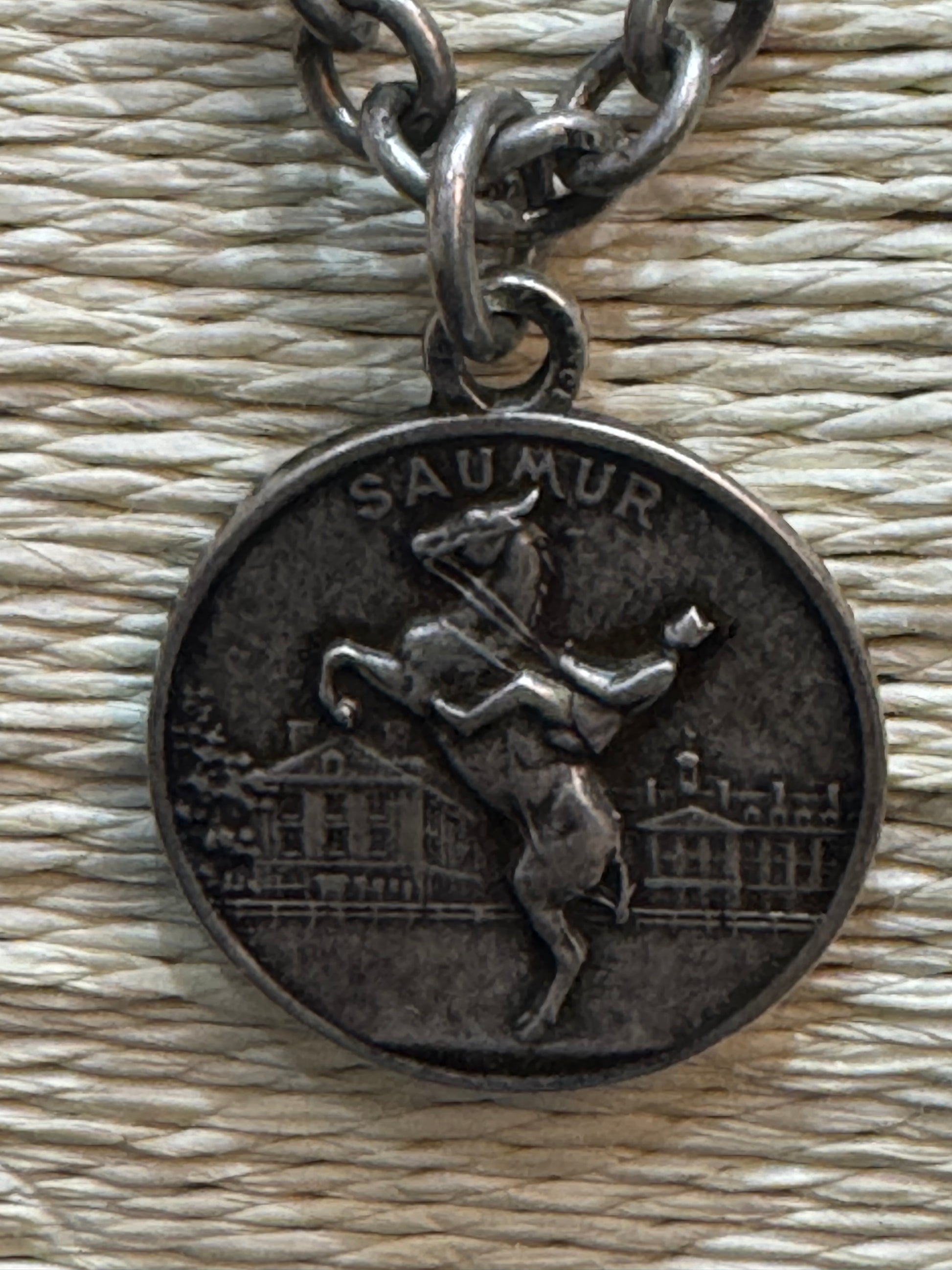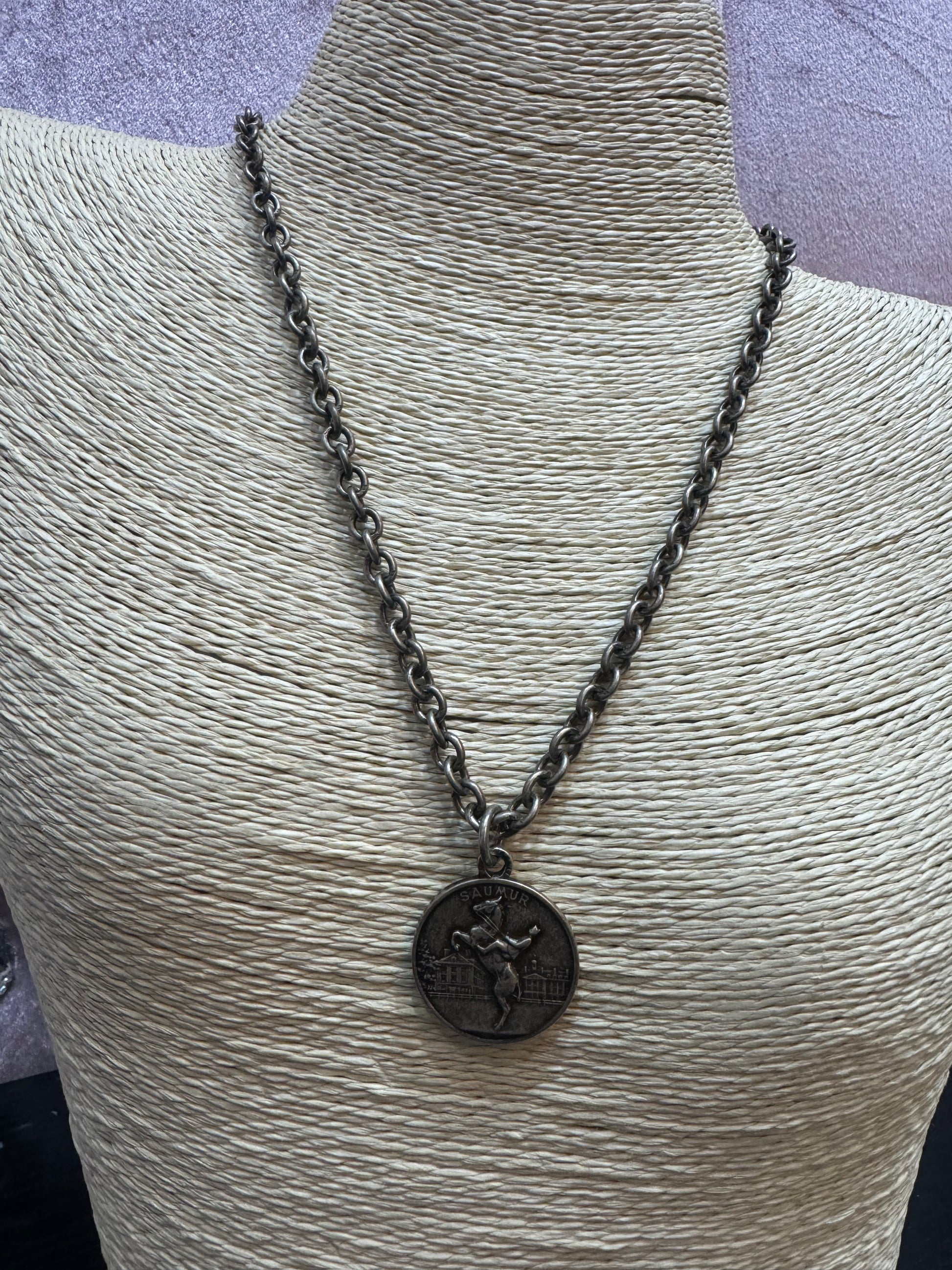 STERLING SILVER NK WITH SAUMUR MEDALLION.
