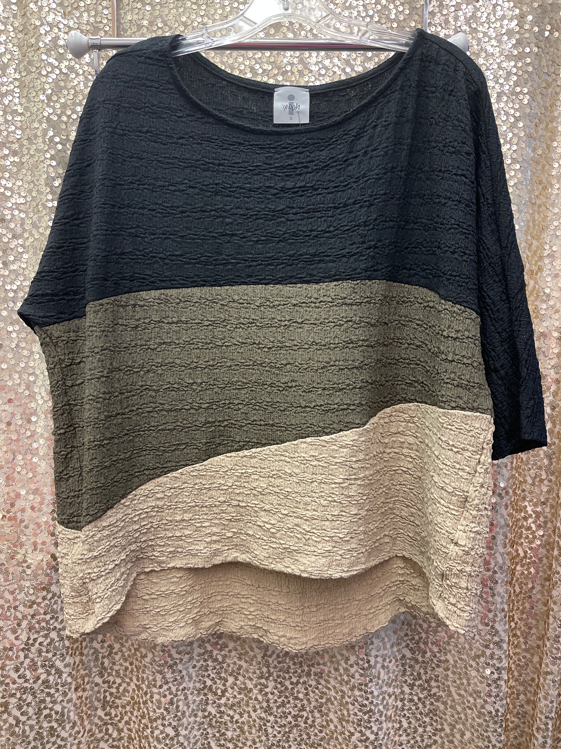 INOAH DOLMAN TOP WAFFLE BLK/OLIVE/MOCHA