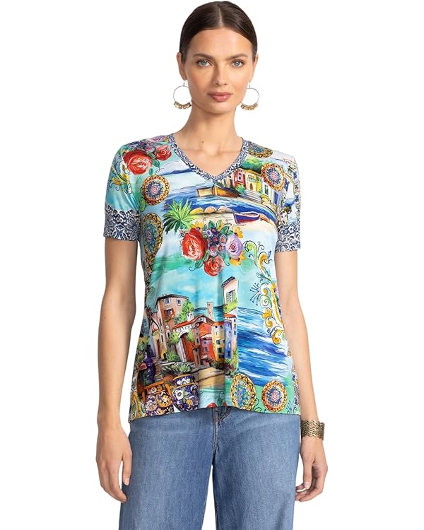 JW THE JANIE FAVORITE SHORT SLEEVE V-NECK TOP