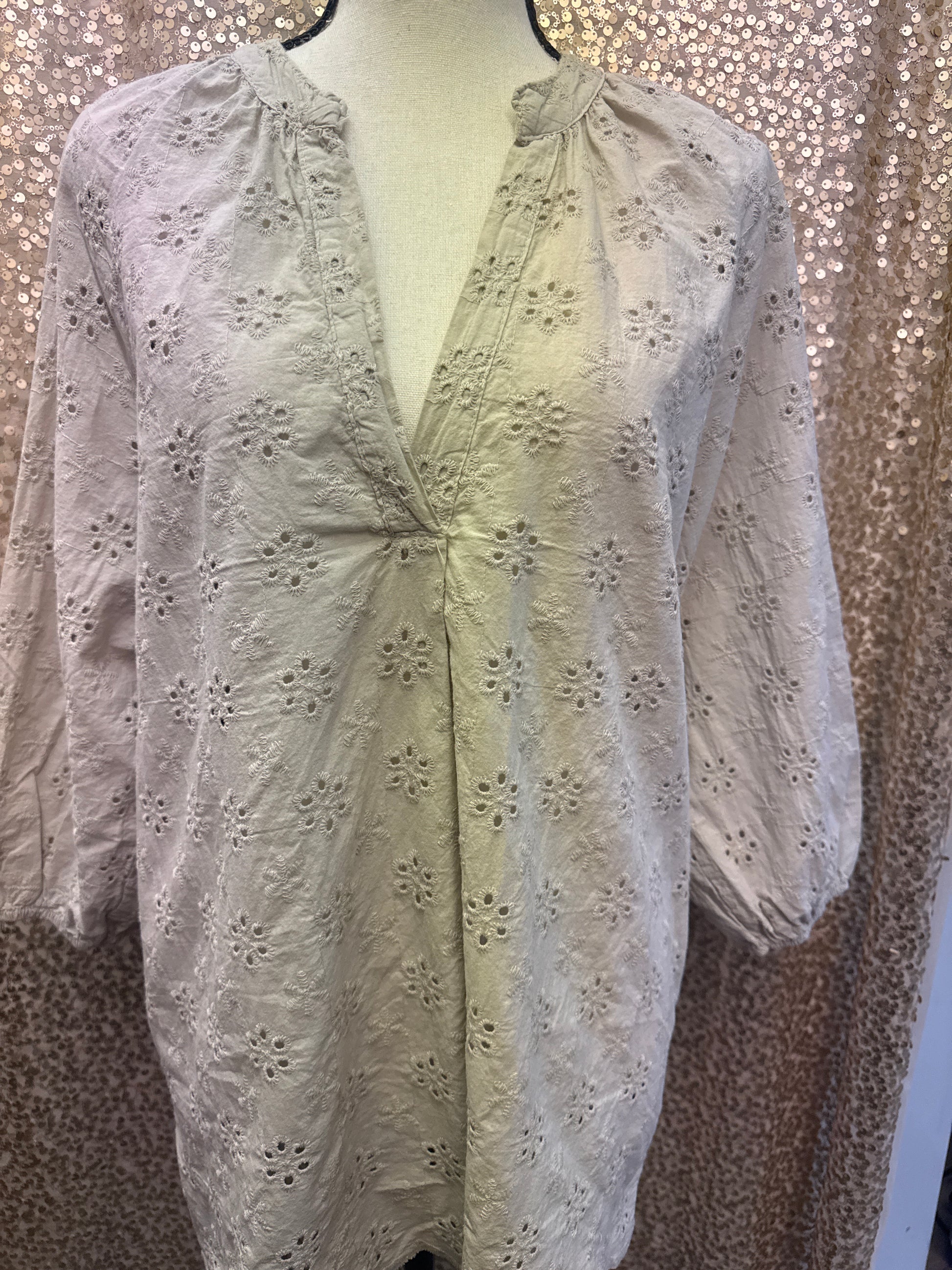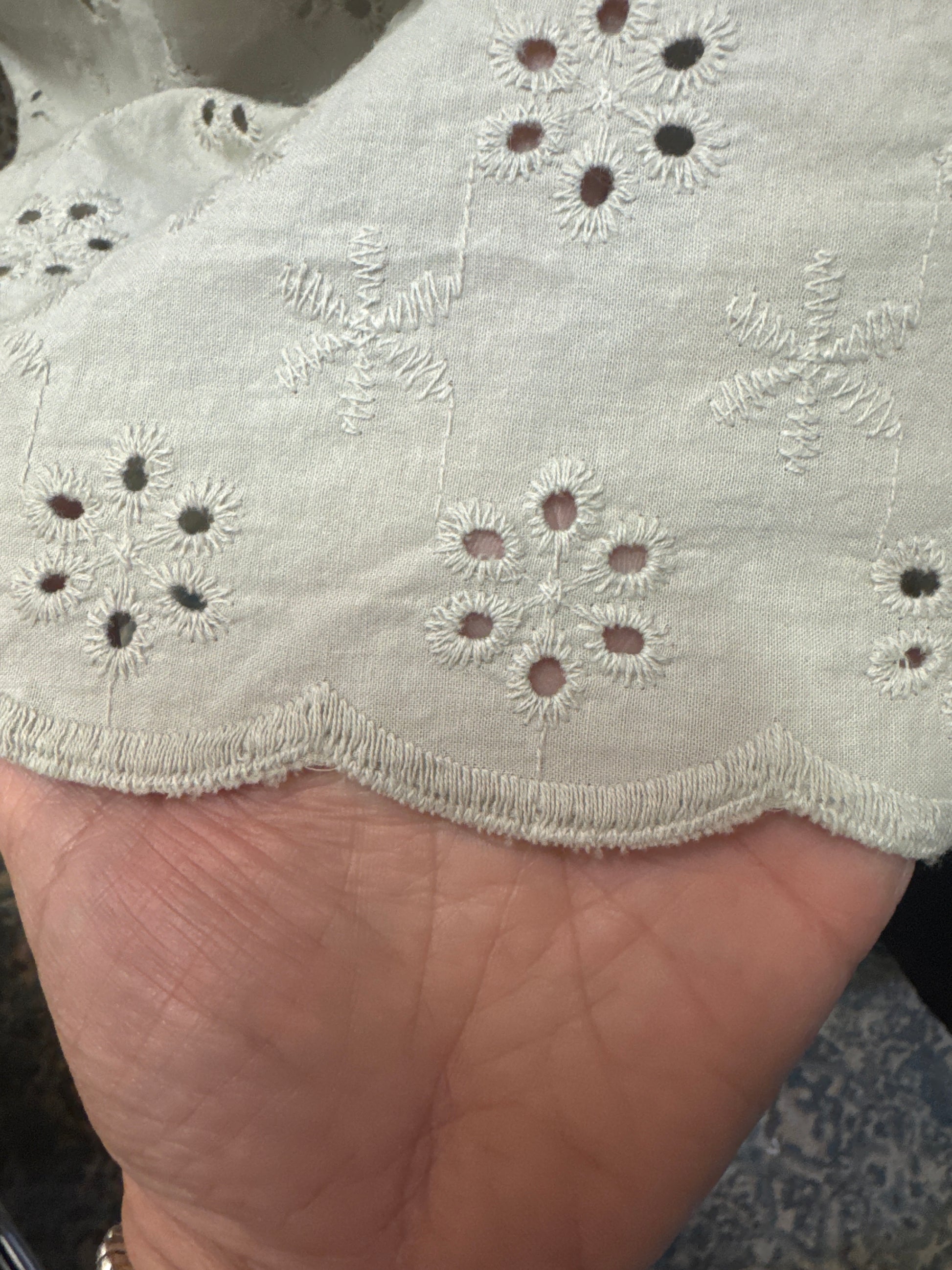EYELET OPEN NECK TOP SCALLOPED EDGE BOTTOM